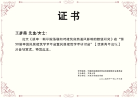 在11月23日上午的分论坛环节,杨耀宁老师团队成员本科生王彦喆,于分论坛七优秀青年论坛上分享了题为《云南传统合院民居营造对建筑自然通风影响的数值研究》的学术报告。该研究立足参数化数值模拟研究,以滇中一颗应为研究对象,系统梳理朝向与民居自然通风的多因素联系,为云南地区活化利用和保护提供参考。