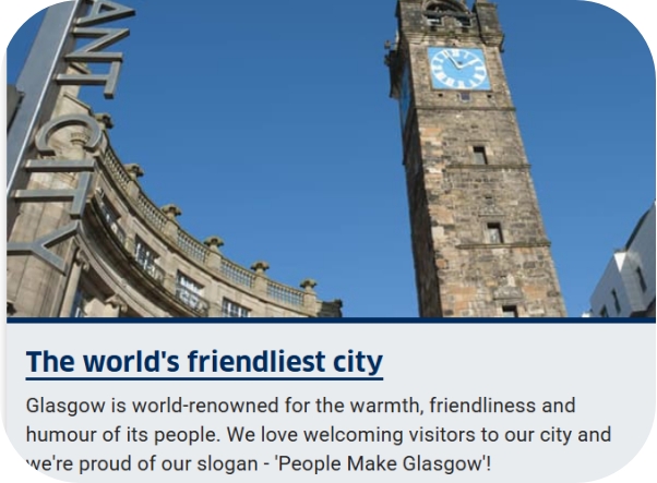 格拉斯哥和我的家乡怒江一样暖!当地那句 “People Make Glasgow!”真没说错 —— 这里的人以温暖、友善、幽默闻名世界,迎接着每一个远道而来的人,和怒江人 “来了就是家人” 的豪爽劲儿太像了。